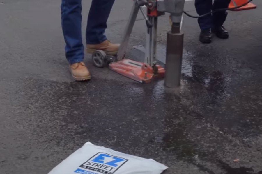 La gente siempre pregunta: ¿EZ Street Asphalt es realmente permanente? Hace años, Tecnologia de Asfalto Colombia S.A.S. hizo una reparación en medio de la lluvia. Hoy, están tomando una muestra básica de esa misma reparación…